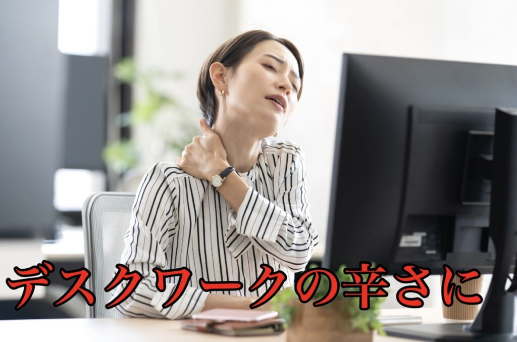 デスクワークは、長時間同じ姿勢を保つことが多く、身体に負担をかけやすいです。特に姿勢が悪かったり、作業環境が整っていなかったりすると、筋肉や関節にストレスがかかり、痛みや不調を引き起こす原因となります😨